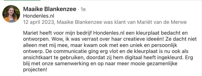 Maaike is sinds april 2023 begonnen met haar bedrijf. Ga je ook eens kijken op Hondenles.nl?