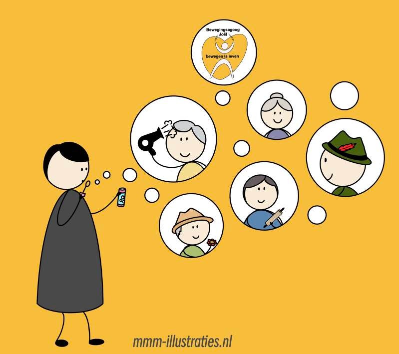 Bewegingsagoog Joël Kruisselbrink heeft een geweldig E-book gemaakt. Ik kende Joël al omdat ik zijn logo mocht maken. Hij verzint creatieve praktische en originele dingen om oudere mensen te activeren. Hiervoor sluit hij vaak aan bij hun interesses van vroeger.