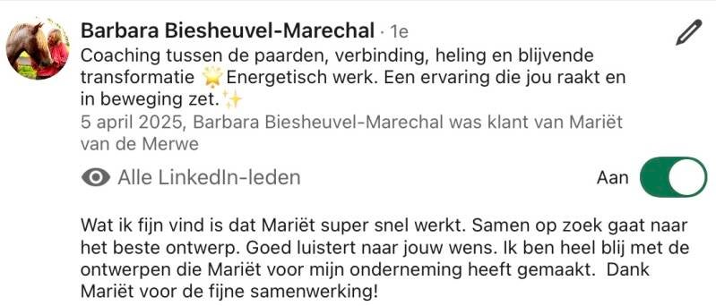 Kun je haar hulp gebruiken? Vind haar via LinkedIn.